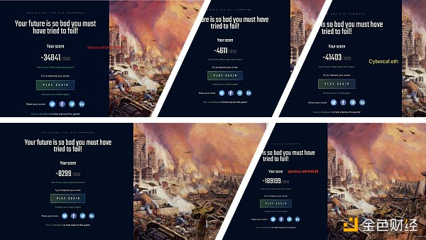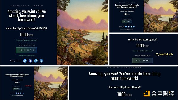 RebeccaWONG:“我拿到 1000 分的模型可以说是超级集权了,就是几个人合伙割韭菜的意思哈哈哈哈哈哈,然后我其实不是首先从 1000 分发现这一点的,我是试了一下极度去中心化,结果给我来了个目前已知最低分 -8299。”