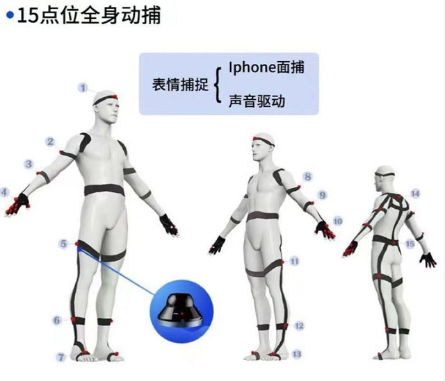 许安一每天直播2-3场,直播前小许需要花20分钟的时间做准备工作,包括穿戴动作捕捉设备。这个设备看起来像是一根根带子绑在他的身体各处,上面有光学标记,随着小许的动作表情,通过技术捕捉渲染后,许安一便“活”了。