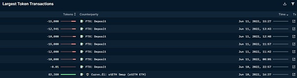 有趣的是,大量的 stETH 从池中被销毁,这表明用户愿意锁定 stETH 折扣,无论是长期持有还是将其换成 ETH。通过链上数据我们可以发现,过去几天,属于 Amber Group 的钱包从 Curve 池中销毁了价值超过 1.5 亿美元的 stETH。然后 Amber Group 将 stETH 发送到 FTX 上。