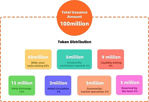 5、初始流通(3%):300万,用于早期矿工初始挖矿抵押;