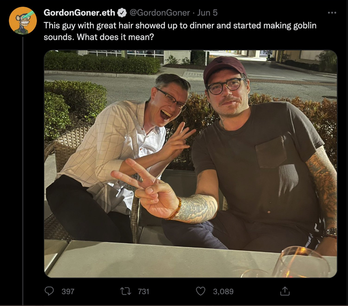 大多数meme项目都是CC0,从cryptoadz(Uniswamp平台的动物)和mfers(是由艺术创作者sartoshi手绘而成的PFP头像类项目,其画风是极简的火柴人形象)到goblins(以哥布林为主题的 PFP头像类NFT )。其价值在于其文化基因容易引起人的共鸣。你甚至都不需要获得这个艺术品的所有权就可以进行二次创作。反过来说,如果团队核心成员带着快速赚到的钱脱离项目,这样很容易造成不良后果,那就是市场注意转移,然后其价格下跌。