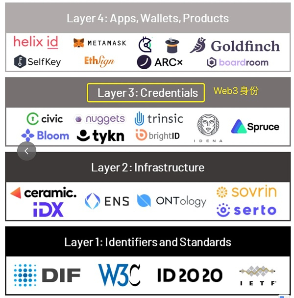 Amber Group于2021年11月勾勒了DID生态系统。DID位于Layer3,处于整个生态的枢纽位置。