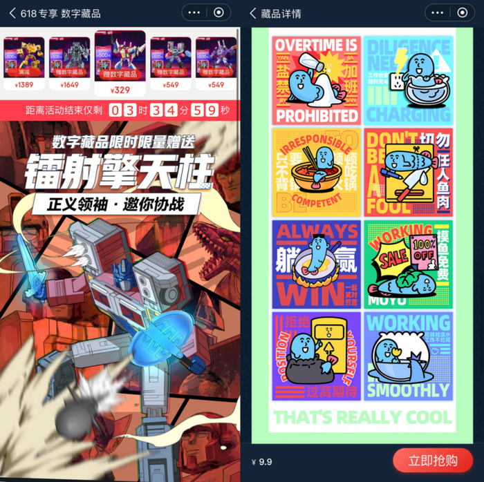 而像阿里和京东这样的头部电商平台在618这样的大促节点如何利用和推广数字藏品,又如何看待元宇宙概念营销在中国的未来,则无疑有着风向标一般的影响。