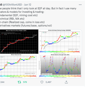 近日推特 KOL PlanB 例举了自己除了熟知的 S2F 以外常用的辅助决策的几个指标模型,鉴于当前波动较大的行情走势以及暴跌后的抄底情绪,我们将这些指标模型展开介绍,以供参考使用之需。