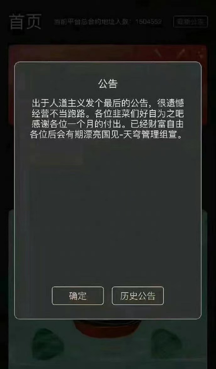 今年6月初,数字藏品平台“天穹数藏”疑似失联跑路,一则跑路公告称,因为经营不善已经跑路,让韭菜们好自为之,但是随后,平台方称,图片系人为造假,没有跑路。此前该平台就曾因“黑客攻击”,平台内的藏品售价突然猛涨千倍,并秒售出去,还有多名用户反馈自己在平台上充值的钱被清零了。