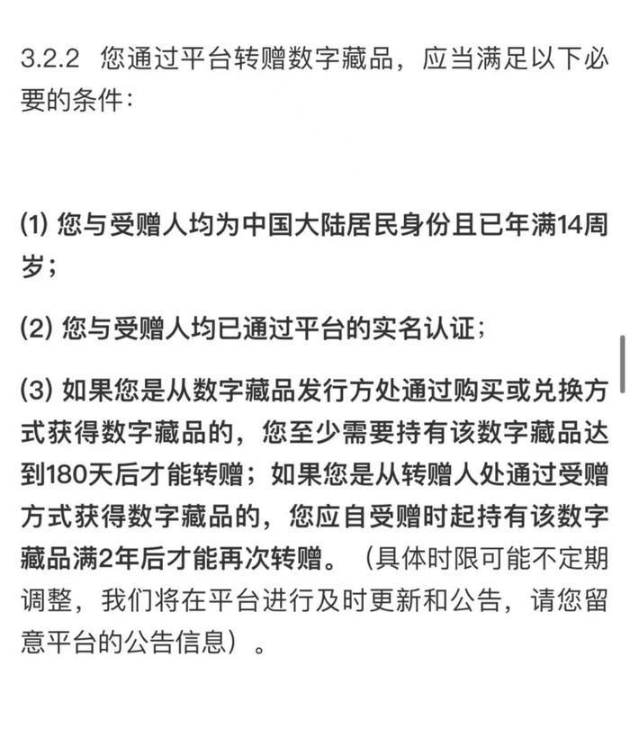 相对于这些平台,大厂们的玩法显然保守了许多,腾讯旗下的幻核、阿里旗下的鲸探等平台都没有开放二级交易。鲸探需要持有数字藏品满180天后才能通过平台转赠,幻核连转赠的功能都未开通。