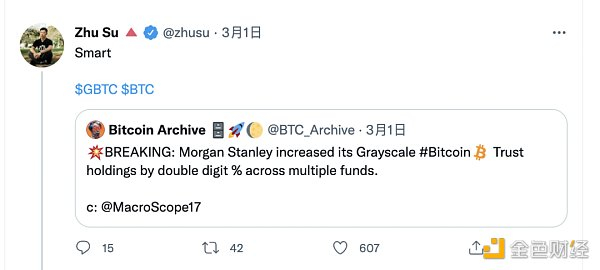 作为 GBTC 第一大持仓机构,Zhu Su 一直所期待的便是 GBTC 早日正名上位,从信托升级为 ETF,这样其持仓价值将快速跃升超过 40%。