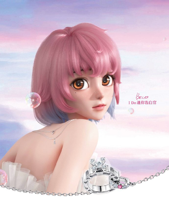 由I Do品牌打造的虚拟偶像Beco佩戴珠宝出现在品牌宣传中。