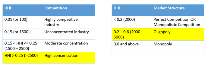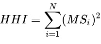 HHI 指数是衡量公司规模与其所在行业相关的指标,也是它们之间竞争程度的指标。计算如下: