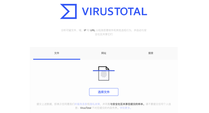 VirusTotal 是一款出色的免费在线安全检测工具 ,可在PDF文件下载前,通过将PDF的网址或URL提交给 VirusTotal,该工具便可以扫描文件并检测文件的安全性;也可以对本地下载好的PDF文件进行上传检测,确定文件是否安全。