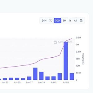 在这笔交易发生之前,ENS域名市场已经躁动数日。7月3日,ENS域名成交量超过326万美元,创下近一个月来最高交易量,登顶NFT市场交易量排行榜。