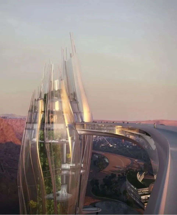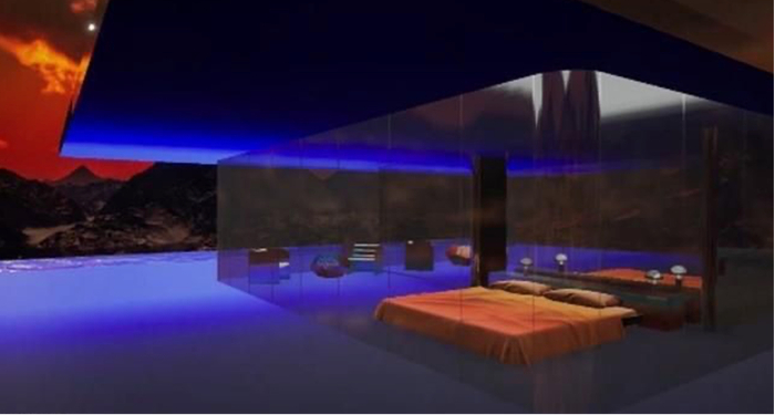 火星之家的家具由钢化玻璃和织物制成,包括用餐区、休息区和睡眠区,还有一个流动的无边泳池。这座住宅坐落在火星的一座山上,为居民提供了火星风景的绝佳视角。
