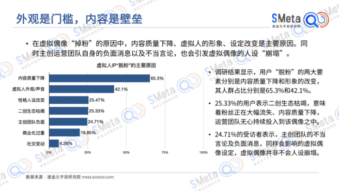 具体分析变现弱势,虚拟主播的强烈二次元属性,决定了其粉丝体量的有限,A-SOUL当前的粉丝量基本上已经是国内虚拟偶像的天花板,相应地商业前景较为狭窄;同为“偶像”,虚拟偶像相比起真人偶像,在很多层面仍然难以破壁,例如影视剧、综艺中与真人同框可能会显得怪异,较为常见的落地场景还是在演唱会上,且商业合作能够选择的品牌也较为有限,因此“务工”受限;技术限制使得虚拟主播难以完全复刻真人肢体动作表情的细微程度;A-SOUL塌房事件,更说明了虚拟偶像仍有风险。