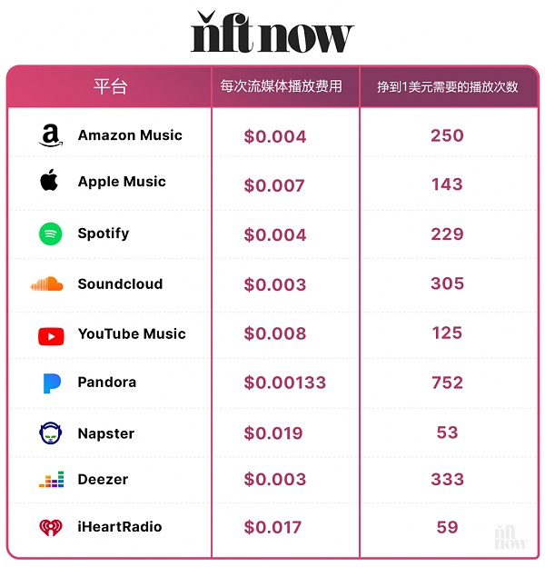 此外,得益于区块链的内在机制,铸造 NFT 的音乐人还可以从二次销售中获得版税收入。这缓解了由于作品销量不佳,或中心化流媒体服务付费极低所造成的 音乐人挣钱难 的问题。简言之,许多人购买音乐 NFT 是因为这样可以为自己喜爱的创作人赋能,给予他们经济上的支持。