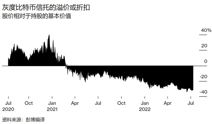 然后来了一个更大的机会。灰度比特币信托(GBTC)允许那些不能或不想直接持有比特币的人购买投资于它们的基金的股票。GBTC 是少数受美国监管的加密产品之一,因此它拥有自己的市场,而且非常受欢迎,以至于其股票的交易价格一直高于其持有的比特币的价值。