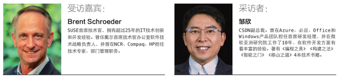 Brent Schroeder:开源是SUSE的核心,它推动我们与客户合作创新。开源技术的源代码面向所有人开放,因此开源商业化的业务模型是要向客户提供代码之外的增量价值。