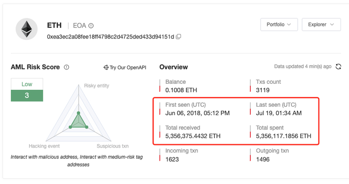 博链财经获悉,7月19日,据慢雾监测,疑似加密交易所Gemini相关地址(0xea3ec2a08fee18ff4798c2d4725ded433d94151d)已在过去数小时内归集并转出逾20万枚ETH,超3亿美元。