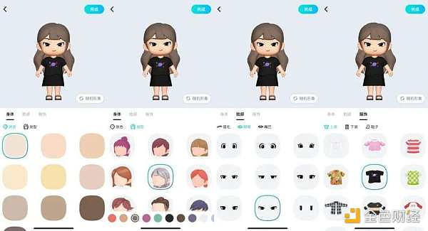 ‘FateU’的虚拟形象风格与啫喱等产品类似,走 Q 萌风格。‘FateU’的虚拟形象创建基本可以分成面部和服装两个类别。
