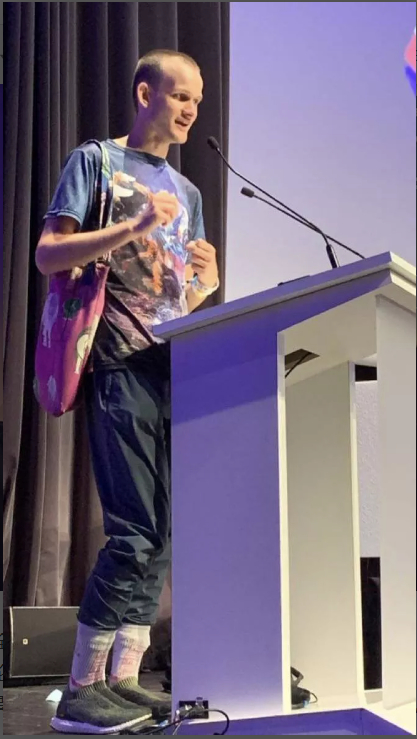时尚达人Vitalik 带着他的新提包来到了时尚之都巴黎,出席ETH CC并发表演讲。
