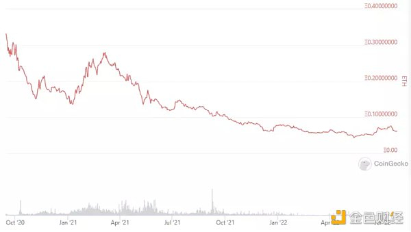 自 2020 年 10 月以来,DeFi 代币兑 ETH 的价格一直在下跌。仅在过去一年,追踪主要 DeFi 代币的 DeFi Pulse 指数兑 ETH 就下跌了 69%。