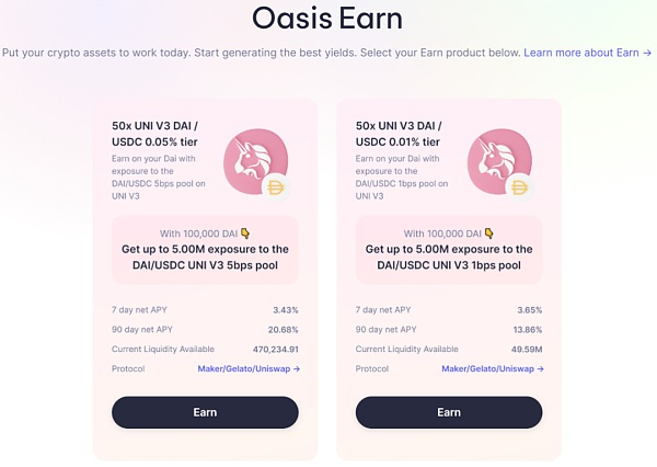 用户还可以选择将铸造的DAI和USDC放入Uniswap V3中进行流动性 Mining 并在Oasis.app上借DAI加杠杆从而达到更高的流动性 Mining 奖励。