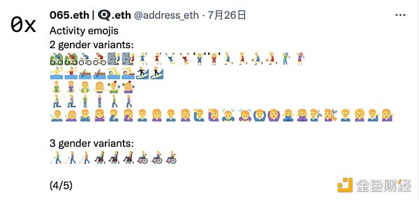 每个 Emoji 表情符号由 1-5 个代码点组成,但显示为一个字符。由于 ENS 域名的最小位数是 3 位,所以对于那些至少由 3 个代码点组成的表情符号,它们可以创建一个单字符的 ENS 域,而在此基础上又可以衍生出双重、三重以及随机表情构成的 Ethmoji,在稀有度划分上可以通过同类表情的不同特征来判断其稀有度,例如在所有 Emoji 中有多少个猫头表情,这些猫头表情各自具有哪些独特的点,越少见的特点其稀有度越高。针对 Ethmoji 稀有度的划分大家可以去参考 @TheZombieth 的帖子。
