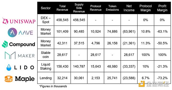 让我们来看看过去六个月中 Uniswap、Aave、Compound、Maker、Maple 和 Lido 六种市场领先的蓝筹 DeFi 协议的盈利能力,并深入探讨更广泛的影响。