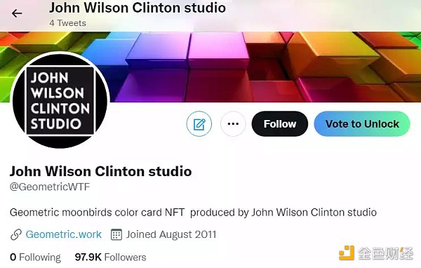 以 Geometric birds 为例,实际上它的官方推特中的艺术家 John Wilson Clinton 是虚构的,只需要搜索一下就会发现互联网上并没有这个‘著名艺术家’的任何信息,关于他的艺术展的信息也是检索不到的。