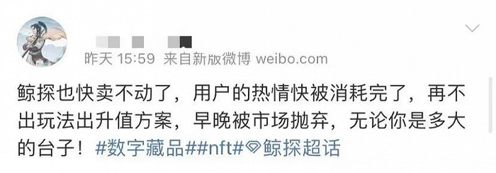 其二是二级市场迟迟不开。虽然数字藏品具有唯一性和收藏价值,但对于目前市场上的产品质量参差不齐,以及绝大部分入局者更看重其“升值价值”的特点来说,无法流通就意味着失去了购买的理由。同时,有不少玩家在接受媒体采访时表示,除了藏品价格下滑,还有不少藏品砸在手里,卖不出去。这加剧了玩家对市场的悲观情绪。