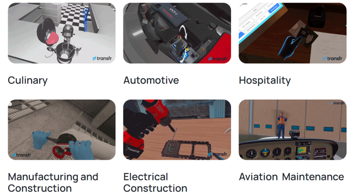 在随后的时间里,Transfr与社区组织、劳动力发展团队、教育机构和行业领导者建立合作关系,将VR解决方案扩展到职业学校、岗位现场培训、培训机构等场景,此外,Transfr已经在烹饪、汽车、先进制造与建筑以及航空航天等行业有所拓展。