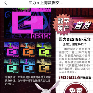 同B站以往数字藏品不同,这份“难抢”的数字资产显得更加“低调”,展现形式也有所不同。一个系列6款形象共计2022份,以“回力DESIGN-元年”为概念主题,免费发行。