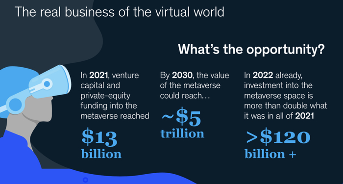 虽然定义仍然是不固定的,但麦肯锡认为元宇宙是互联网的下一个迭代,它将让我们沉浸其中,而不仅仅是看到而已。