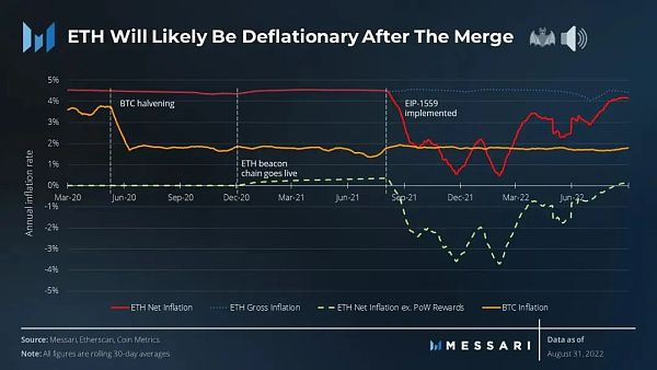 合并后,区块奖励减少了90%。这大大降低了网络的通货膨胀,并减少了其年度安全支出。如果以太坊从本季度初开始使用PoS,那么它的净通缩供应将比累计验证者奖励多消耗1600个ETH。