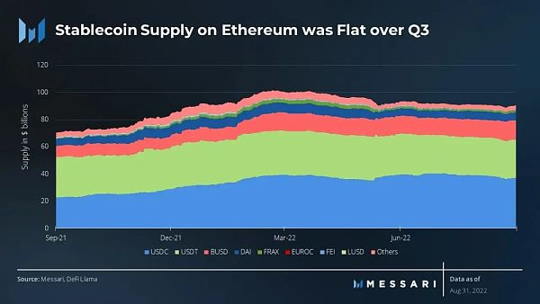 稳定币是去中心化金融生态系统中的流动性。其转折与以太坊的整体市值有着相当紧密的相关性。虽然稳定币的走势和总体交易量与第二季度基本持平,但有许多可能对DeFi发展产生重要影响的活动值得注意: