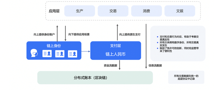 链上数字身份为可组合性提供互认通用的身份标识;而链上数字人民币方案可以使支付成为链上应用和认证过的链上数字身份系统的原生功能,从而令可组合性发挥,帮助链上业务实现闭环的作用。链上数字人民币支付是实现可组合性的关键。链上人民币对生态发展和确定交易真实性都有诸多好处,从而使监管更为便利。支持链上数字身份和链上人民币后: