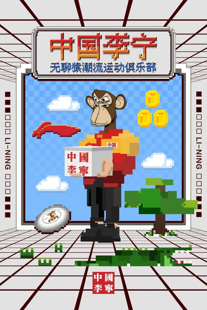 不过李宁对 NFT 的挖掘和应用并未单纯局限于虚拟世界的数字艺术,今年 4 月,中国李宁推出“中国李宁无聊猿潮流运动俱乐部”系列服饰,该系列服饰以其购买的无聊猿 #4102 形象为主题,结合自身品牌特点,融入时下热门的像素化风格与飞盘、摩托等潮流元素,充分利用了该 NFT 的版权以及二次创作权。此外,中国李宁将无聊猿 #4102 定为其“无聊不无聊快闪店”的潮流主理人,并于今年劳动节前后在北京三里屯太古里店举办了‘无聊不无聊’主题快闪活动。通过将虚拟世界融入现实空间,李宁用像素化的风格展示出了全新潮流运动的魅力以及无聊猿自由不羁的个性态度,这也是中国品牌第一次将虚拟 NFT 运用到实体经济赋能的大胆探索。
