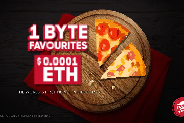 同样属于 Yum! Brands 旗下的必胜客(Pizza Hut)紧随 Taco Bell 的步伐,马上也在去年 3 月推出了一款“像素化披萨”艺术品“1 Byte Favourites”,并将其以 0.0001 ETH(时价约合 0.18 美元)的价格挂在了 NFT 交易平台 Rarible 上。必胜客表示将每隔一周发布一片披萨的 NFT 图像。每个切片和 NFT 图像都代表着不同的配方,例如有夏威夷披萨、意大利辣香肠披萨,该 NFT 的售价也一度达到了 5 ETH(时价约 9000 美元)。