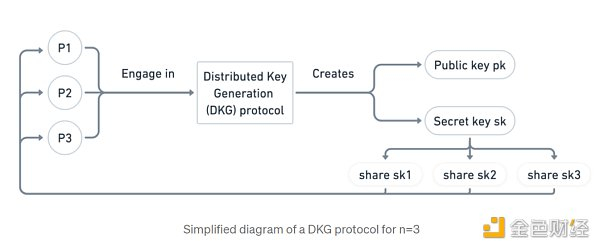 当验证者对区块达成一致需要签名时,采用 BLS 阈值签名方案来实现签名。其允许 N 个验证者共同签名数据,并且在 t+1(0) 个验证者正确签名的情况下实现完整签名。通过 tss 的方案,既实现了每一个验证者都无法获得完整的签名私钥,又保证了完整签名的顺利生成。