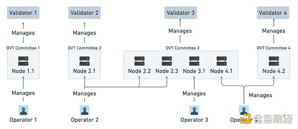 表面上看,SSV 提供了稳健的、去中心化的进入以太坊质押(Staking)生态系统的途径。再深入一点,SSV 是一个复杂的、配有共识层的多签钱包,SSV 在信标链节点和验证者客户端之间充当缓冲器的作用。