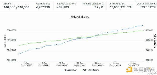 质押门槛:验证者为了履行职责参与共识出块需要质押 32ETH 作为保证金资产。