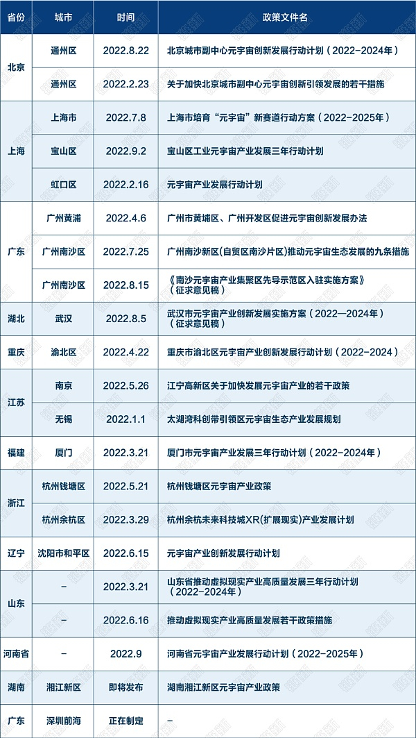 此后,全国各地纷纷出台元宇宙相关政策,抢占元宇宙产业发展先机。