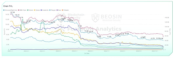 和上一季度相比,以太坊、BNB Chain、Fantom、Avalanche四条公链连续两个季度均监测到主要安全事件。