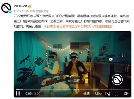 开源证券分析师方光照分析认为,作为首次在北半球冬季举行的世界杯,卡塔尔世界杯或迎来更高的关注度,世界杯赛事营销或成为广告投放的热点,而拥有世界杯转播权的抖音亦有望迎来流量增量,基于抖音版权和流量支持的PicoVR世界杯直播尤其值得期待。