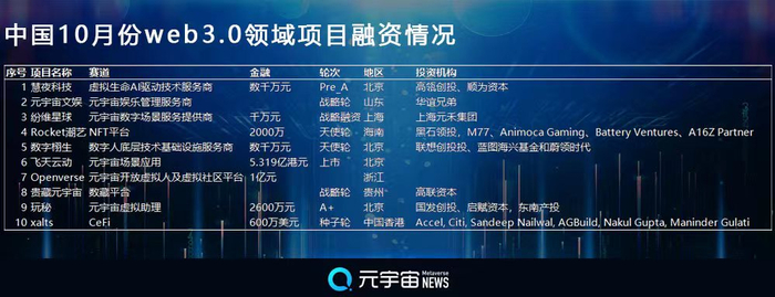 10月Web3.0市场共融资8.5亿美元,虚拟人赛道在国内最受青睐