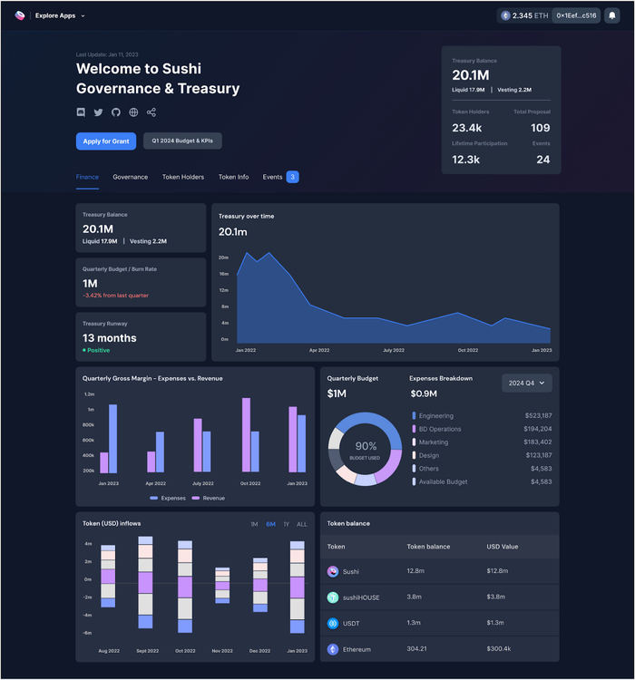 Sushi团队还将构建一个治理仪表板来展示团队预算、项目钱包和财政部支出的审计结果,将在其发布时提供这些信息。