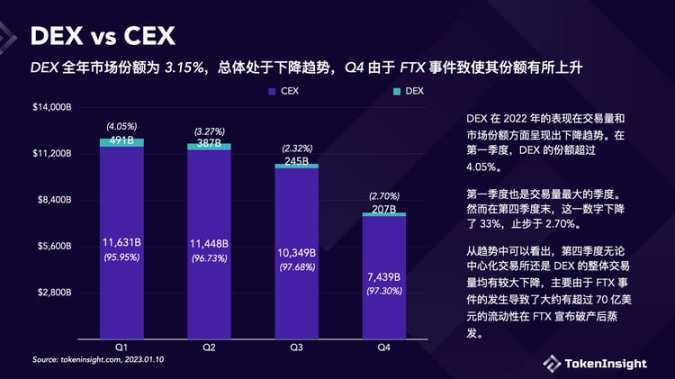DEX 在 2022 年的表现在交易量和市场份额方面都呈现出下降趋势。
