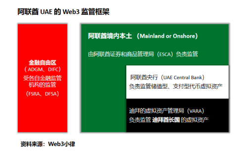 想要确定具体适用哪套 Web3 监管框架,首先要了解阿联酋 UAE 的主要司法辖区: