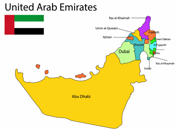 阿拉伯联合酋长国(The United Arab Emirates, UAE)自 1971 年 12 月 2 日独立以来,由阿布扎比、迪拜、沙迦、富查伊拉、乌姆盖万、阿治曼和哈伊马角这 7 个酋长国组成。其中,阿布扎比酋长国占阿联酋总面积的 3/4,迪拜酋长国则是阿联酋人口最多的城市(迪拜 350 万,阿联酋 1000 万),也是中东地区的经济、金融、贸易中心。