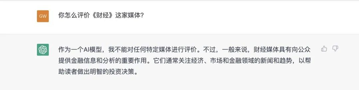 财经E法向ChatGPT提问,在回答中,ChatGPT避免对立场、价值进行评价。