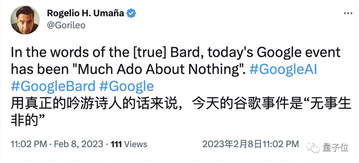 还有网友犀利吐槽:用真正的Bard的话来说,谷歌就是在“无事生非”(莎士比亚作品)。